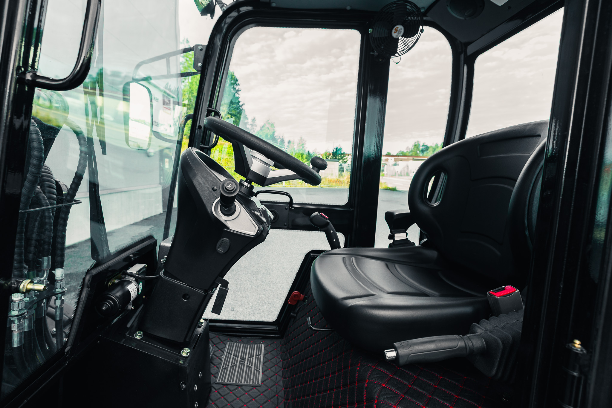 Built-in entertainment and communication system for operator comfort during long workdays.