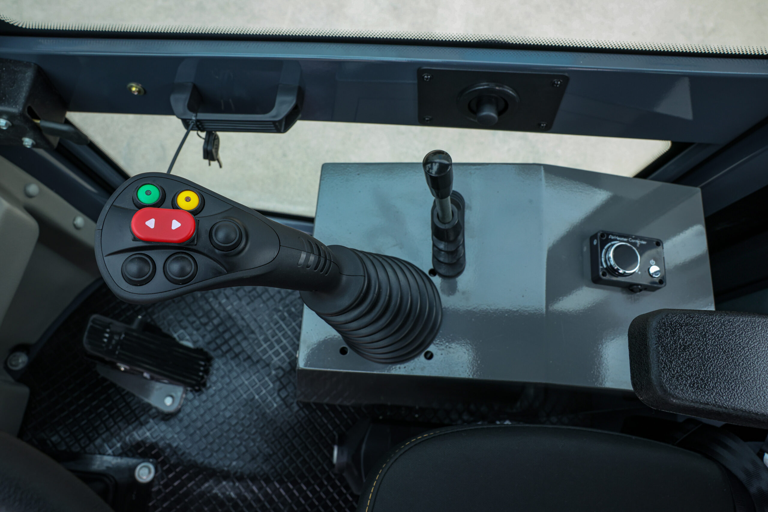 Built-in entertainment and communication system for operator comfort during long workdays.