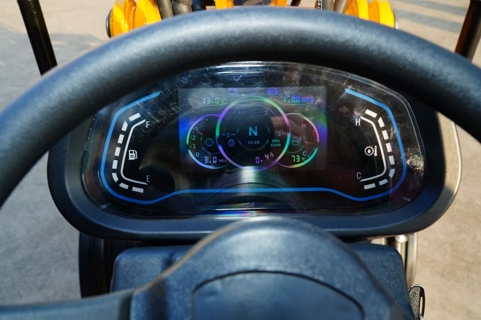 Built-in entertainment and communication system for operator comfort during long workdays.